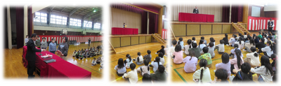 が紹介されました。また、修了式は、子供たちが「かしこく・なかよく・たくましく」成長するために努力してきた過程を認める大切な節目であること、できるようになったことには自信をもち、今後の課題についてはどのように取り組めばよいかを考え、次の学年へつなげてほしいという話がありました。