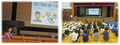今月の生活目標は「落ち着いて生活しよう」です。落ち着いて生活することで、安全に過ごせることや、時間や心にゆとりが生まれ安心して生活できること、集中力が高まりできることが増えること、人に優しくなれること、そして日常の小さな幸せに気付けることなど、五つの良さが紹介しました。