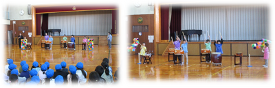 多くの児童が見守る中、特別支援学級の子供たちは日頃の練習の成果を存分に発揮し、迫力ある太鼓演奏を披露しました。力強いリズムだけでなく、演奏に合わせて複雑な動きを取り入れながらステージ上を移動する姿には、観ている児童も教職員をもワクワクしました。心を一つにして演奏する姿からは、これまでみんなで協力して取り組んできた努力と、学級として培ってきたチームワークの素晴らしさが伝わってきました。かいのき学級への喝采の拍手が送られて、かいのき児童の笑顔が印象的でした。