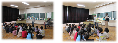 本日、2年生を対象に「お話会」を行いました。「お話会」は、図書ボランティアの皆様が学年に合わせて選んだ本を、読み聞かせや紙芝居、パネルシアターなどを通して紹介する取り組みです。